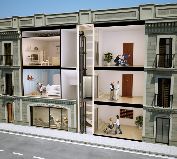 CONFORT. Seguridad y confort para el pasajero.ADAPTABILIDAD. Adaptable tanto en el interior como en el exterior del edificio.MOVILIDAD. Mejora la movilidad de personas en viviendas privadas o edificios públicos.